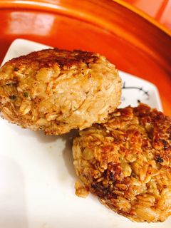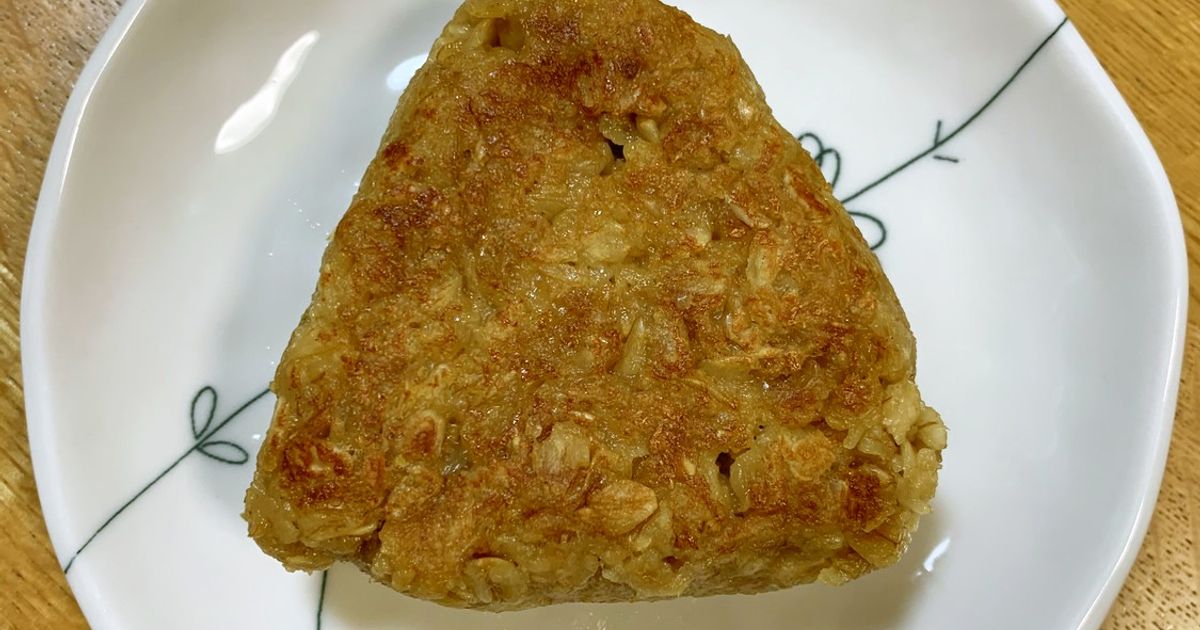 冷凍できる レンジで簡単に作れる全粒オートミールごはんの絶品平焼きおにぎり。