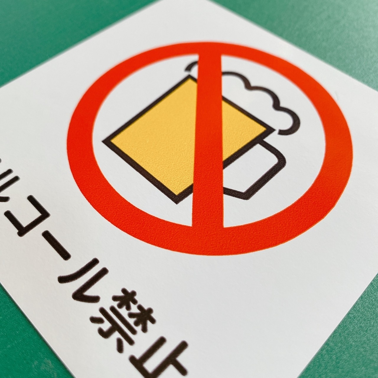 注意喚起! 禁止サイン・禁止マーク アルコール持ち込み禁止の場所や飲酒運転防止に!アルコール禁止色付きシール♪ 禁酒・お酒・店舗・施設カッティング・印刷専門 思い出屋さん。