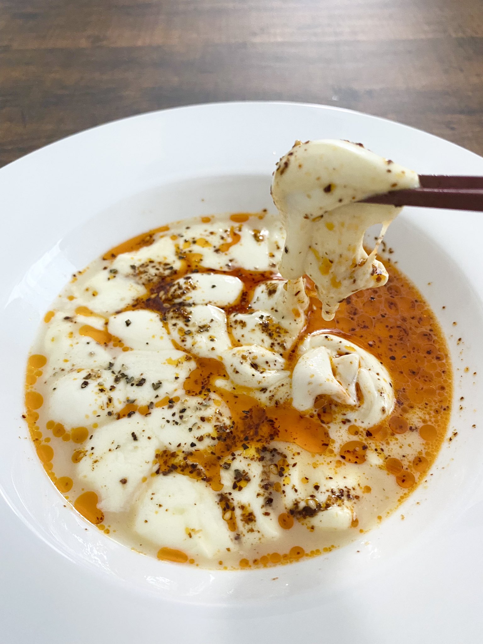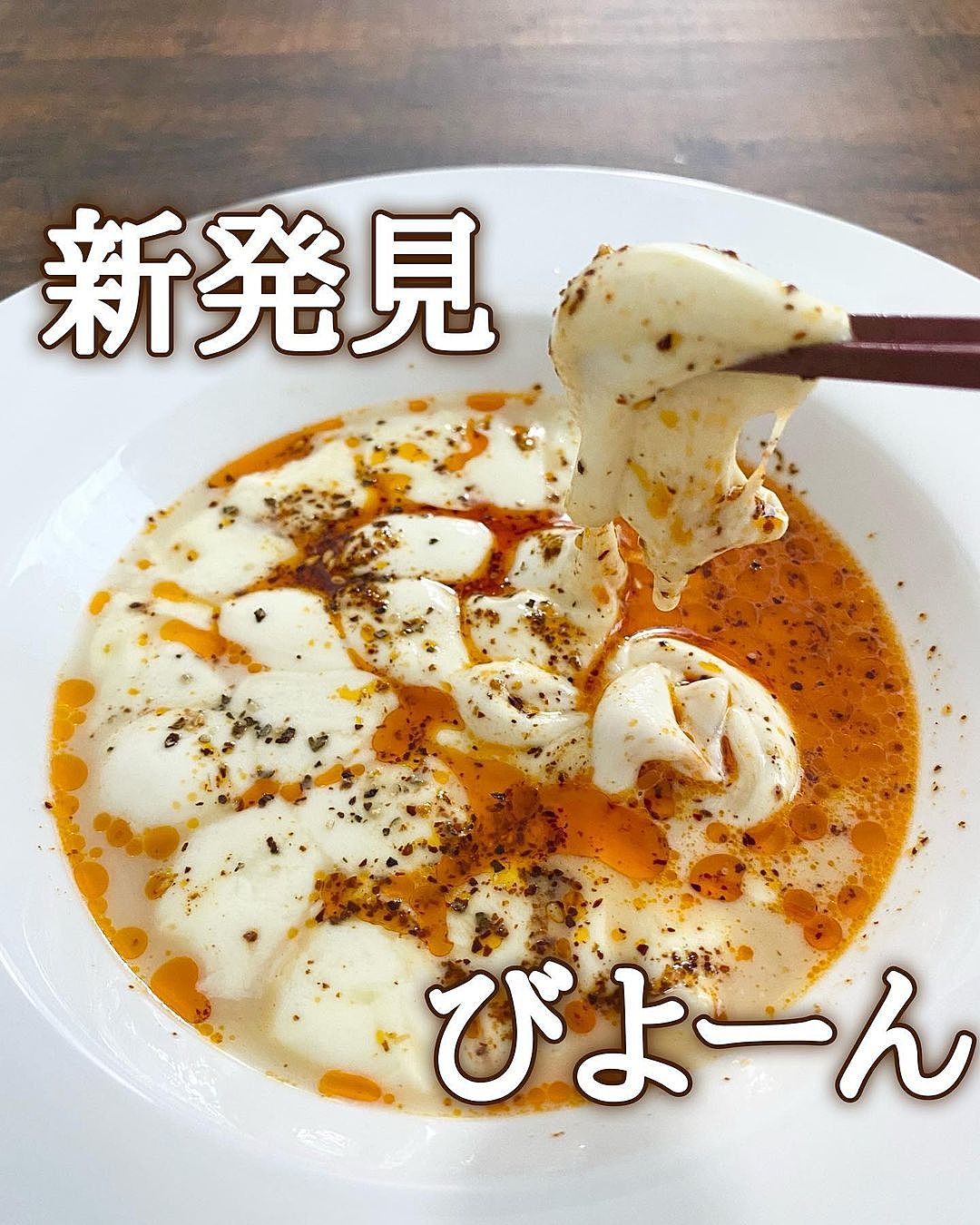ツマ@簡単おつまみ on X: "みなさん 聞こえますか モッツァレラチーズの一番美味しい食べ方教えますお皿にモッツァレラチーズを出したらラー油を回しかけレンジで40秒〜1分レンチン。塩胡椒で味を整える。このビヨーン食べてみて??マジで病みつきになるから https。