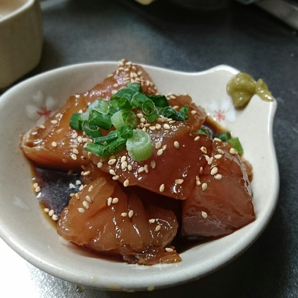 麺つゆでマグロの漬け。