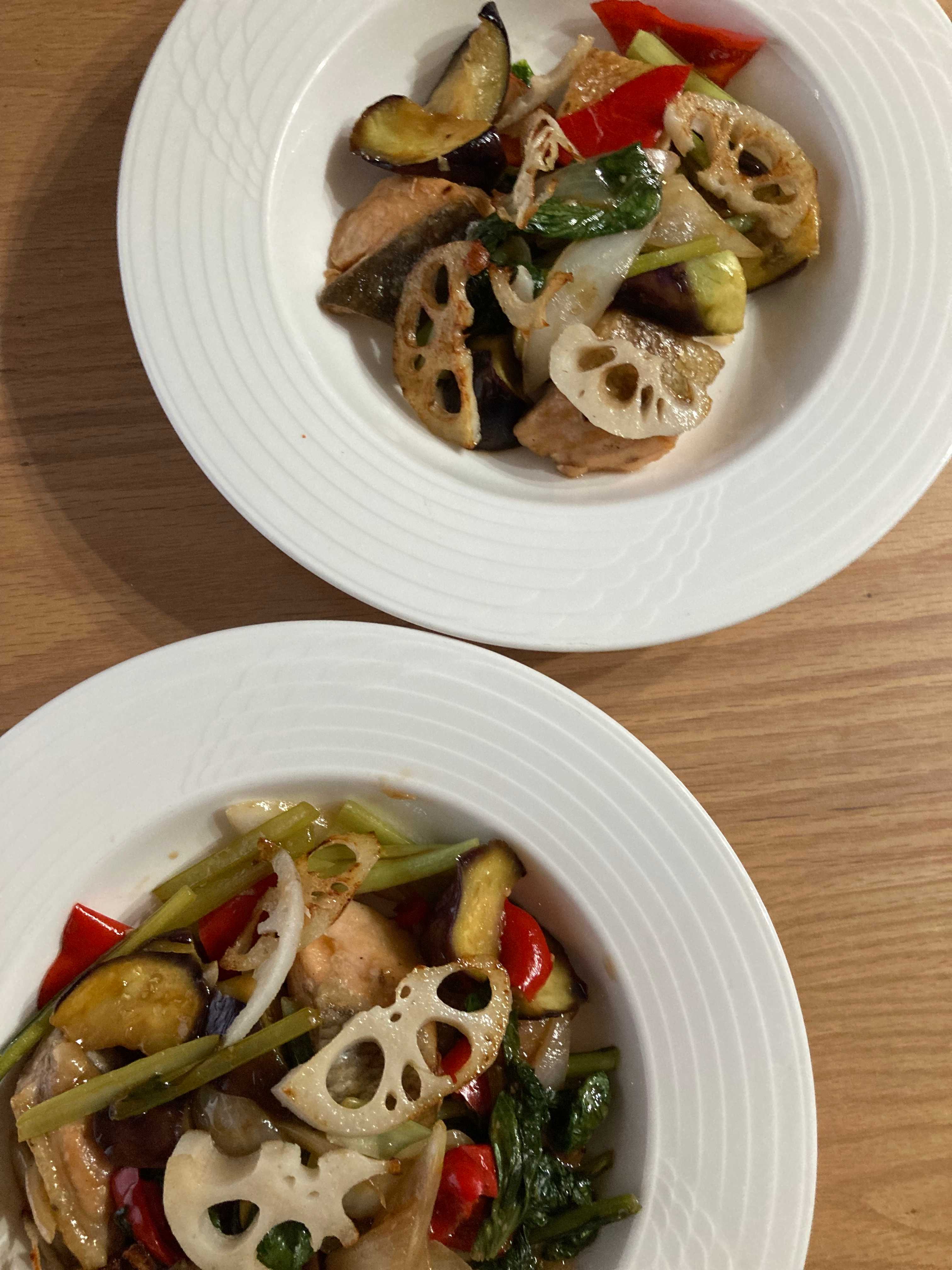 たまに手の込んだ料理を楽しむ鮭と野菜の甘酢あんかけ - 小豆のごはん日記。
