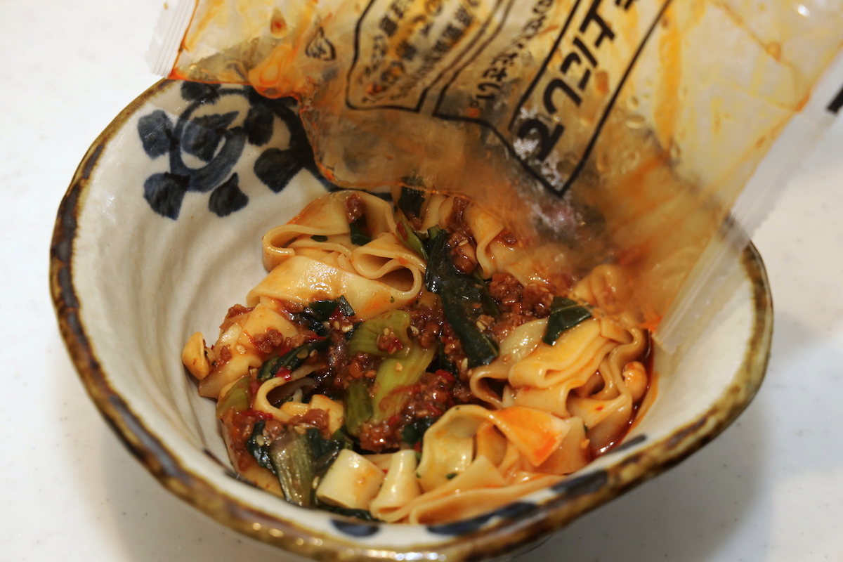 ファミリーマート 香酢が効いた旨辛たれビャンビャン麺 冷凍食品でビャンビャン麺 刀削麺 コンビニ縄文弥生のぼよよん日記。