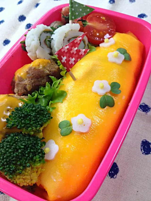 水玉ならぬ「花柄オムライス」の可愛いお弁当 - micvanyのお弁当記。