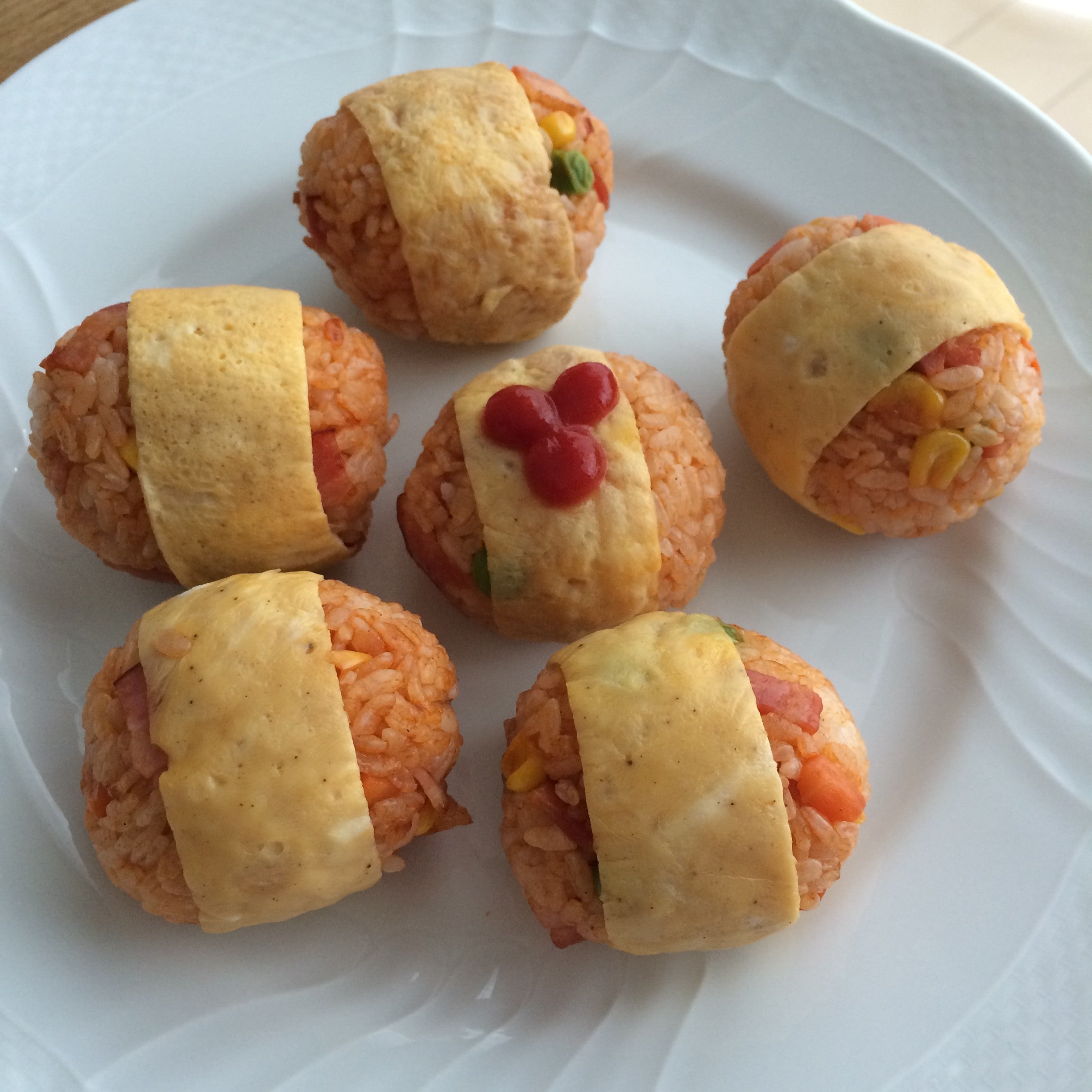 ピクニックやお弁当にかわいいオムライスおにぎり。