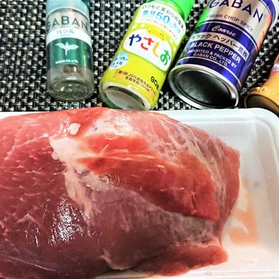 これ以上簡単でうまいローストポークはありません🙈 レシピ👇炊飯器で作るローストポーク・豚肩ロースブロック300g〜500g・塩豚肉の重量の1% 300gなら3g・ローズマリー1〜2枝 ・ニンニク1片 ・オリーブオイル大さじ1 ●ソース・ポン酢50cc ・みりん50cc ・肉汁大さじ1〜2 ・バター10g ・ブラックペッパー適量。
