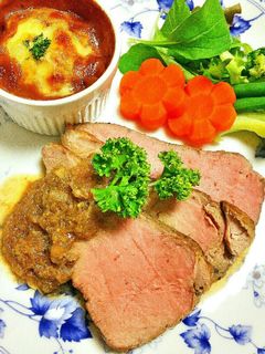 湯煎で放置するから失敗なし♡焼肉のタレで作るローストビーフ。