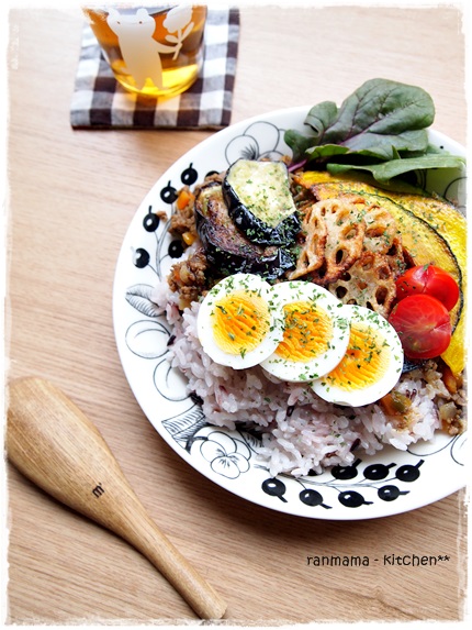 野菜の素揚げ付きドライカレー : ranmama-kitchen**。