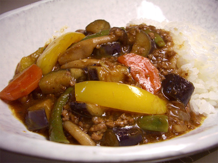 トロトロ茄子の夏野菜カレー』 素揚げした茄子がトロトロです ^-^: マイホームクッキングダイアリ。