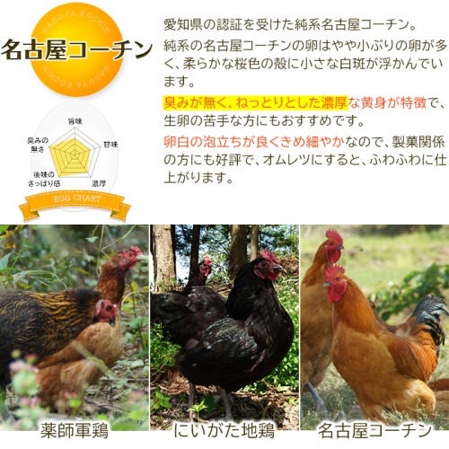 あずさと四種の地鶏詰め合わせ あじわいたまごセットにいがた地鶏・あずさ・軍鶏・岡崎おうはん・名古屋コーチン各2個・計10個。