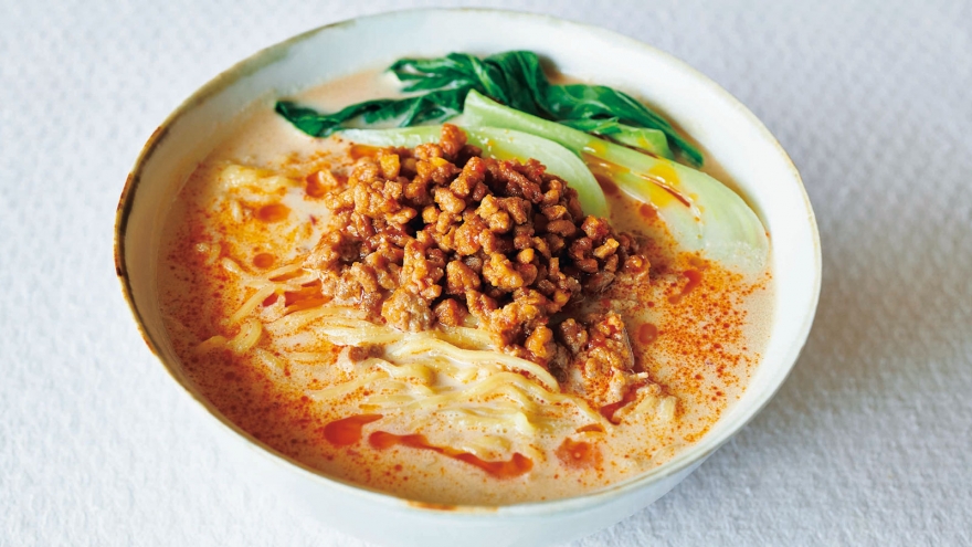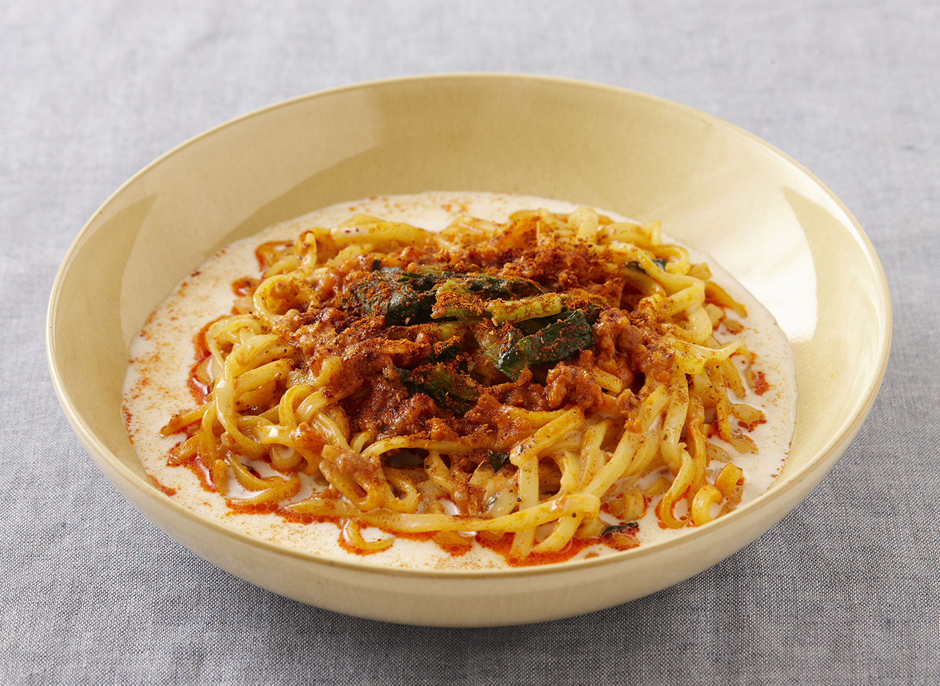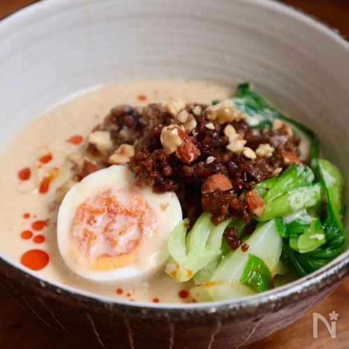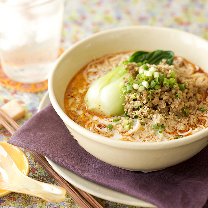 牛乳とピーナツペーストで作るマイルド担々麺。