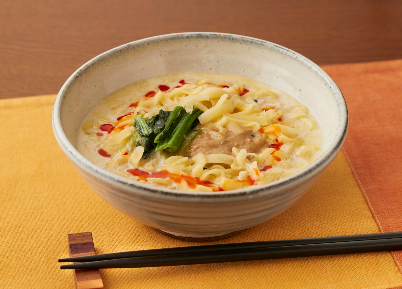 冷凍野菜と牛乳のコラボ・ミルク担々麺ジェイエイフーズみやざき。