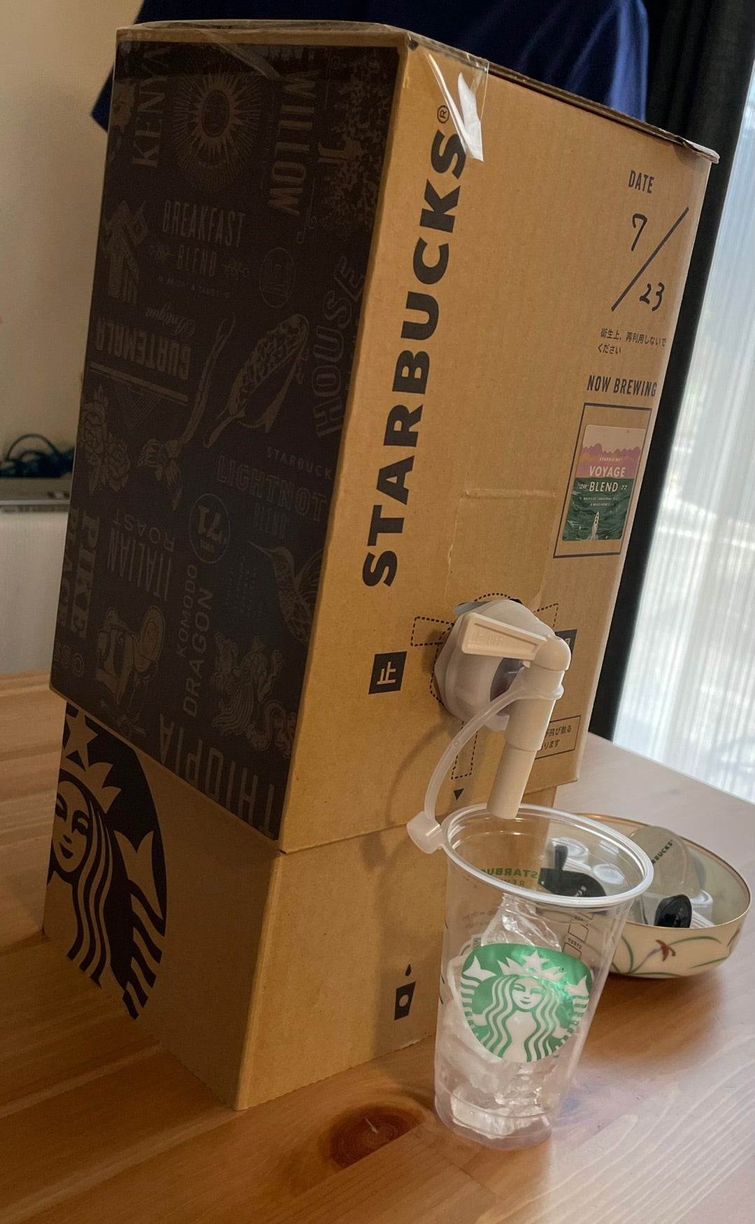 ✔️コーヒートラベラー 素敵なものを持って来てくれました〜! いれたてのドリップコーヒー12杯分☕️ 夏だからアイスコーヒーです!これは楽しい!パーティー気分だね🥳 今宵はみんなでピザパーティー🍕笑 🔎asumon_stb starbucksstarbuckscoffee。