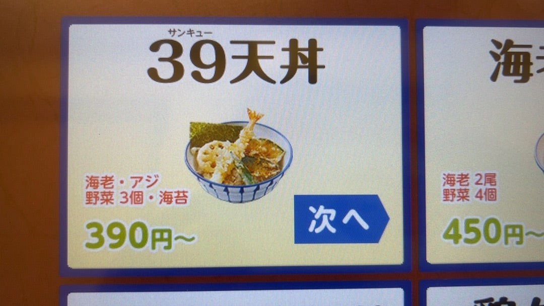 39天丼 390円 天丼・天ぷら本舗 さん天 岩槻店 埼玉県さいたま市岩槻区東町1丁目いかは釣らない いか釣り漁師 たまには釣りしたいな。