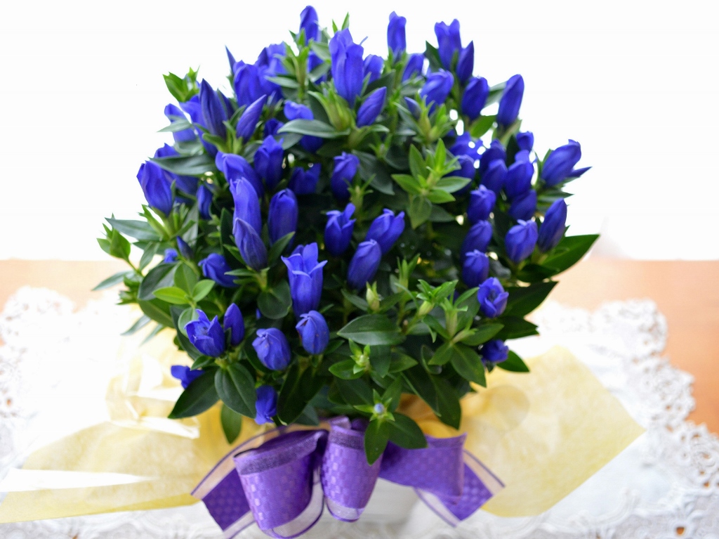 敬老の日プレゼント 花鉢 リンドウ 青 ブルー系 誕生日、結婚記念日、お祝い、新築祝い、敬老の日 商品詳細│株式会社川田生花店フラワーギフトの通信販売。