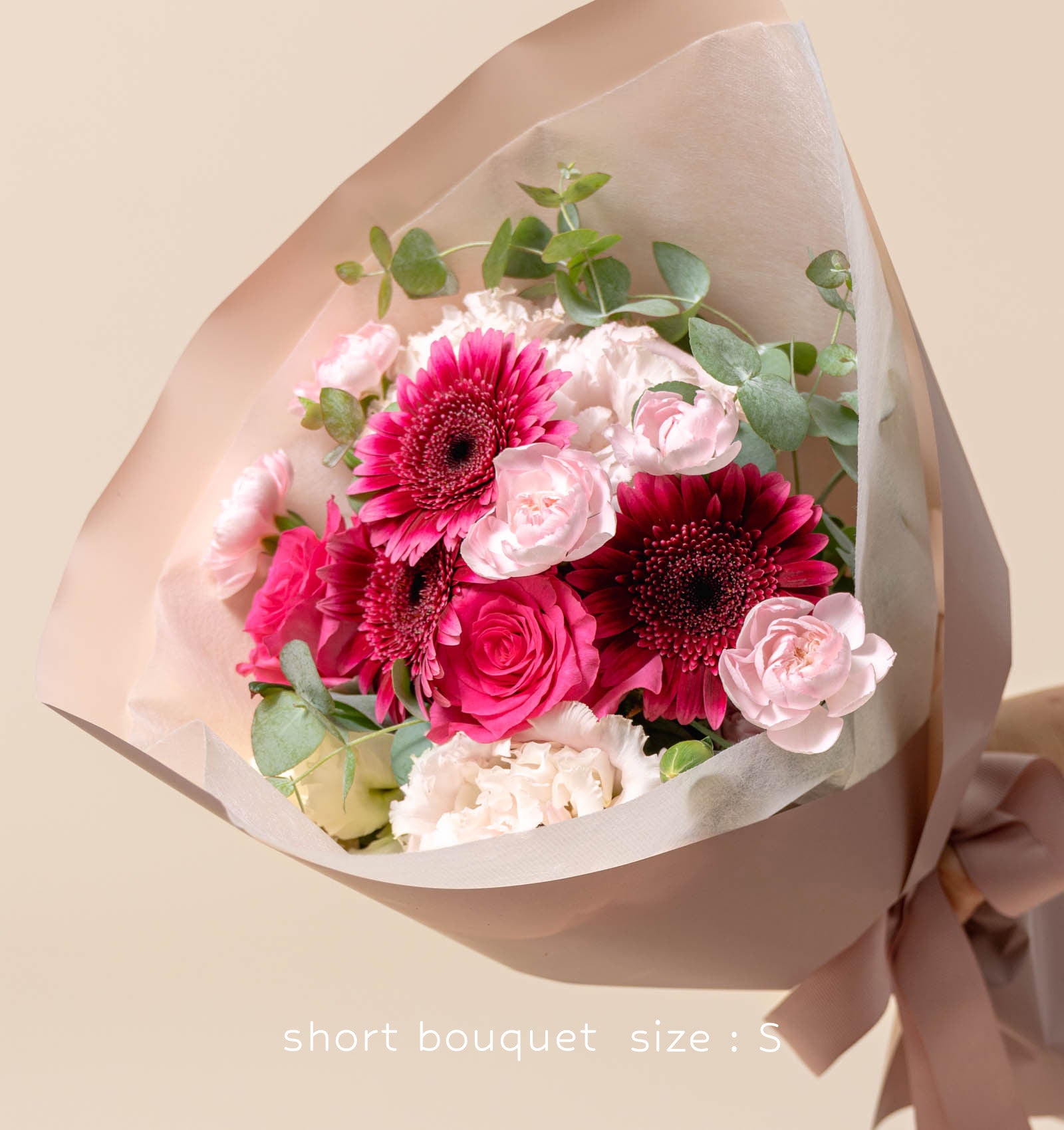 花束アレンジ size:S 濃いピンク花次郎のフラワーギフトプレゼント花束ブーケ生花おしゃれおすすめ安い誕生日結婚祝い母の日 敬老の日お花の贈り物。
