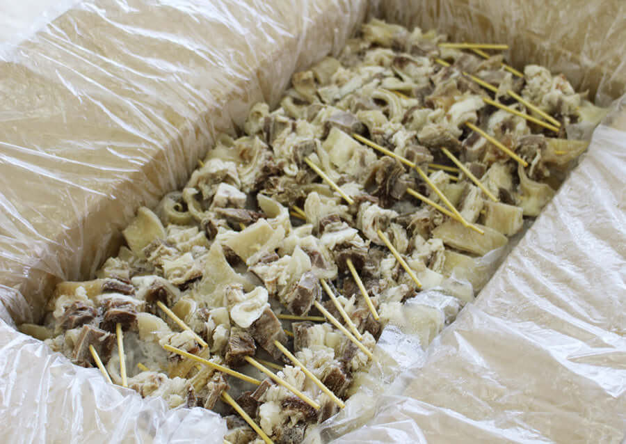 業務用 国産牛すじ串5kg 200本- おでんや煮込みに最適 – 牛すじボイル下処理済販売・カレーおでん串煮込み国産牛すじの達人 筑前屋。