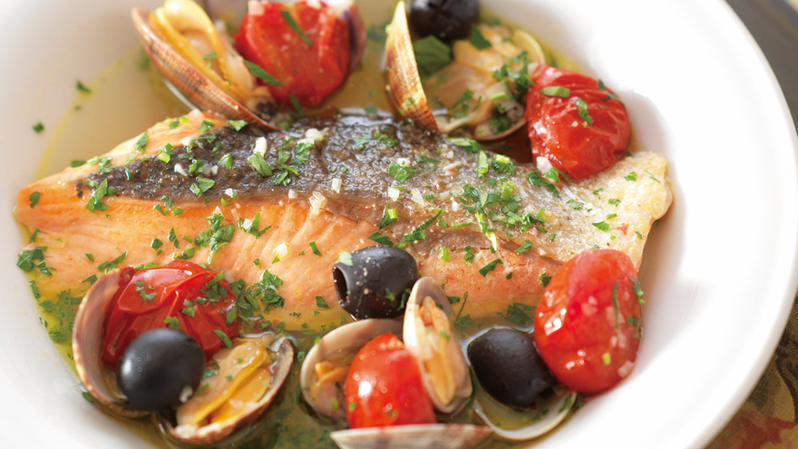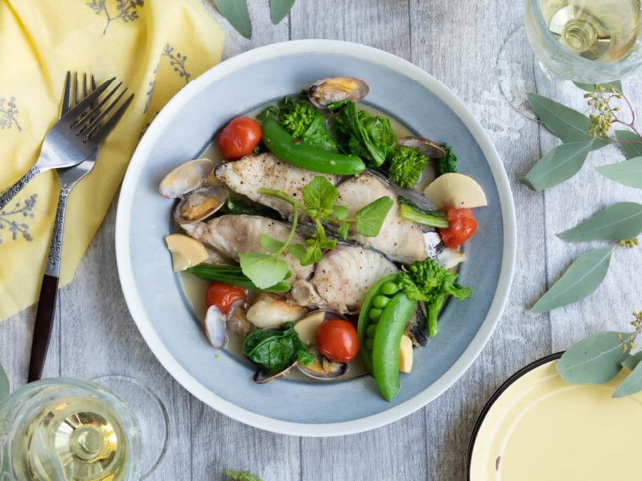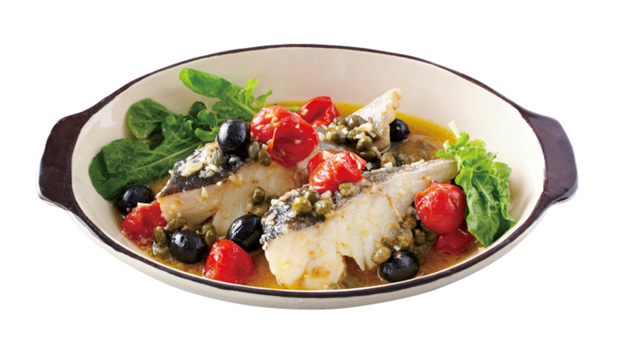 旨みの詰まった煮汁で白身魚を味わう。「切り身で作るアクアパッツァ」のレシピ。