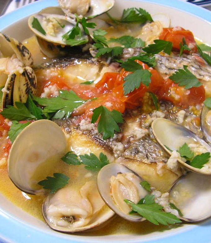 さっぱりおしゃれ♪ スズキのアクアパッツァ。
