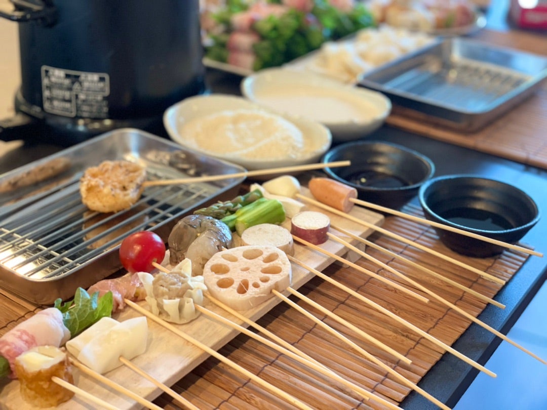 おうちでもアウトドアでも!みんなでワイワイ、揚げたてサクサクの串揚げを楽しもうおうちごはん。