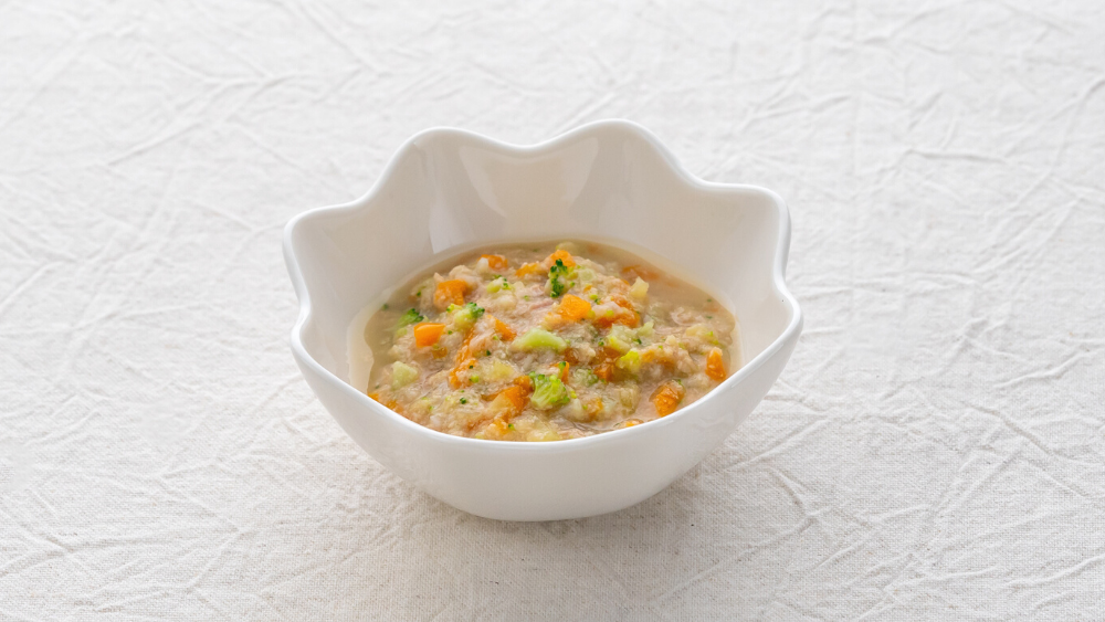 離乳食中期◎納豆と野菜いっぱいのおかゆ。