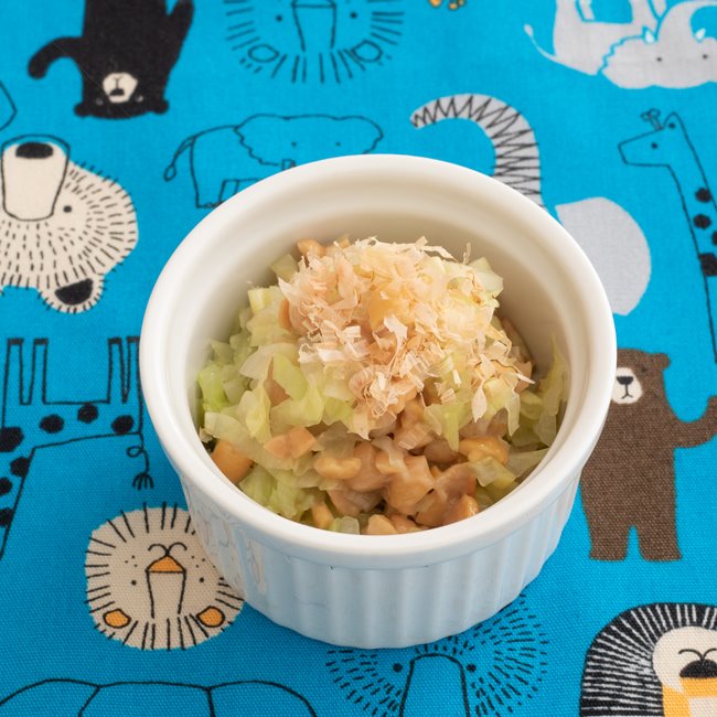 離乳食レシピ キャベツと納豆のとろとろあえ モグモグ期 7〜8カ月ごろmamaomoi -ママオモイ。