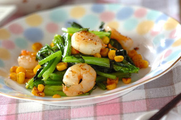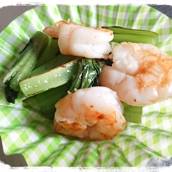 お弁当の隙間おかず☆えびと小松菜の塩炒め。