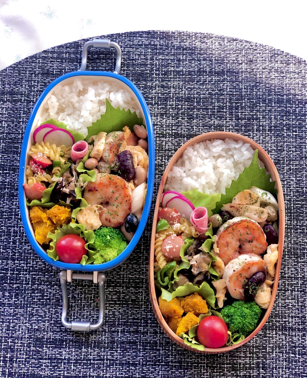 えびふらいのしっぽと、リアルえびふらいのお弁当🍤夕飯にエビ &アジフライを揚げたら娘たちがすごくよく食べてくれた〜嬉しいけど、これもっと食べ盛りになったら我が家は一体何本のエビを揚げることになるのだろうか 🤔?今朝は転校、転園してから初めての雨。長女は。