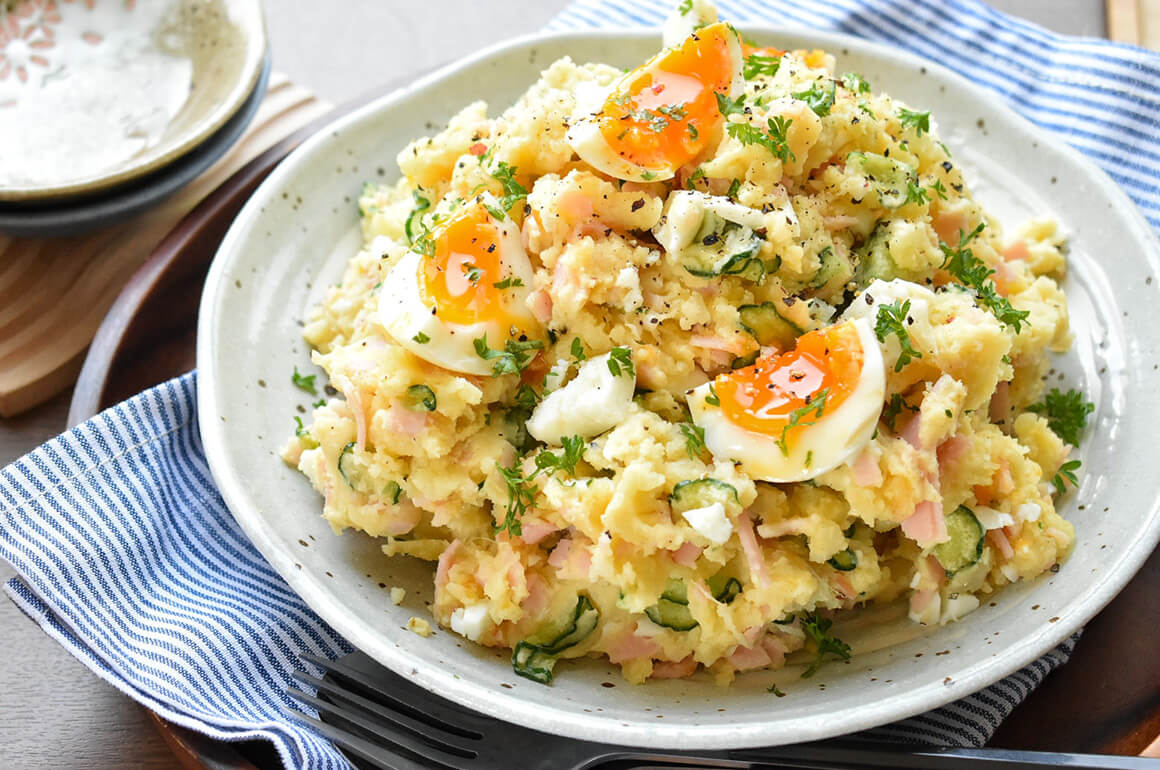 白だしでベーコンと玉ねぎのポテトサラダ白だし16倍レシピ七福醸造株式会社。