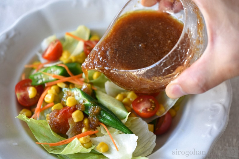 簡単美味しい!玉ねぎドレッシングのレシピ 作り方:白ごはん.com。