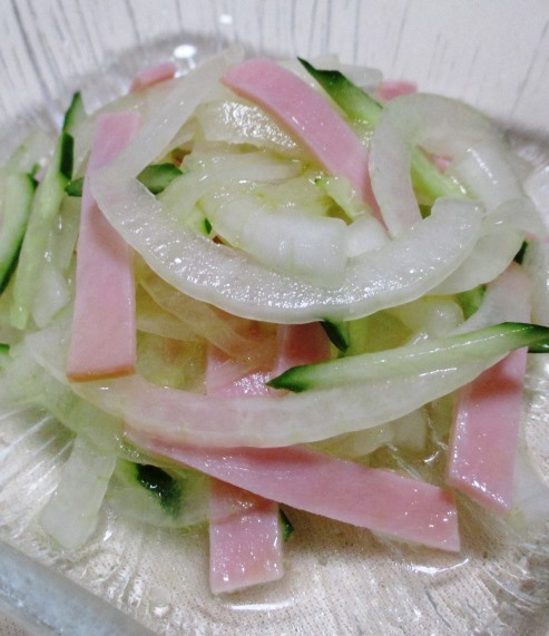 新玉ねぎとハムのサラダ<白だしドレッシング> - おうちで楽しむ簡単レシピ。