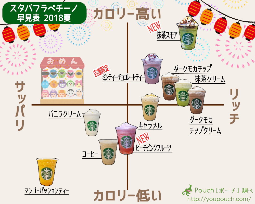 スタバの「フラペチーノ早見表」を作ったよ☆ カロリーとリッチ感がひとめでわかります2018年夏Pouch ポーチ。