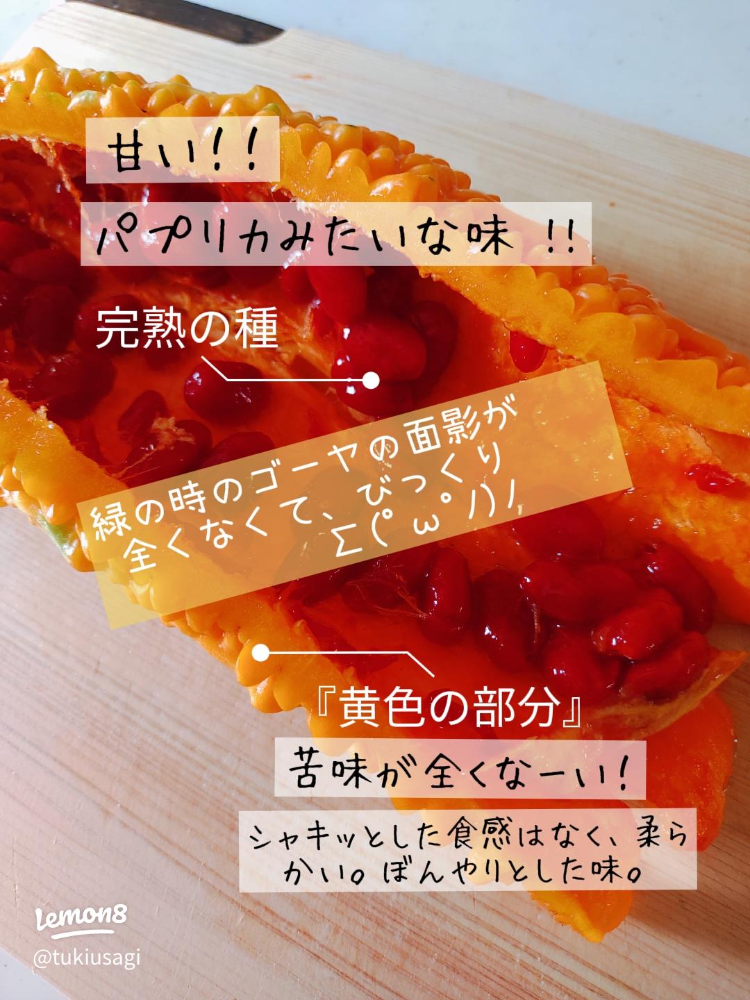 ゴーヤって一晩でオレンジ色になっちゃう。 熟れたゴーヤも美味しく食べられるって、ドラマで見た覚えがあるんだけど「凪のおいとま」だったかな。