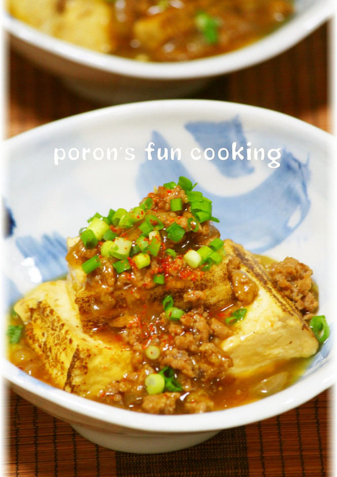 焼き豆腐と豚ひき肉の甘辛とろみ煮。