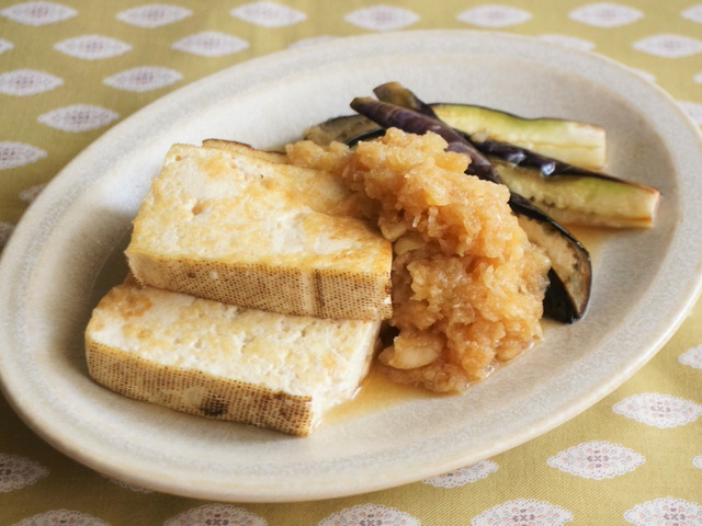 焼き豆腐ステーキの和風おろしソースがけ。