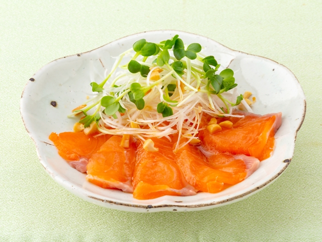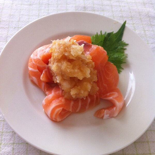 サーモンのたたき~まる生Wおろしぽん酢漬け~。