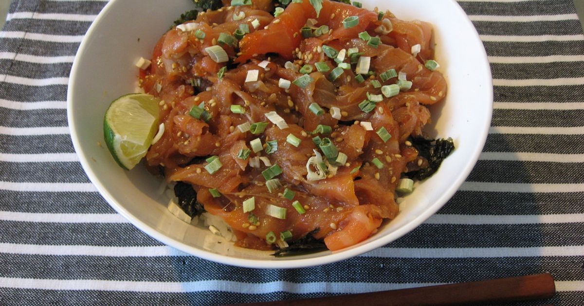 レシピ サーモンのゆずポン酢漬け丼の作り方。
