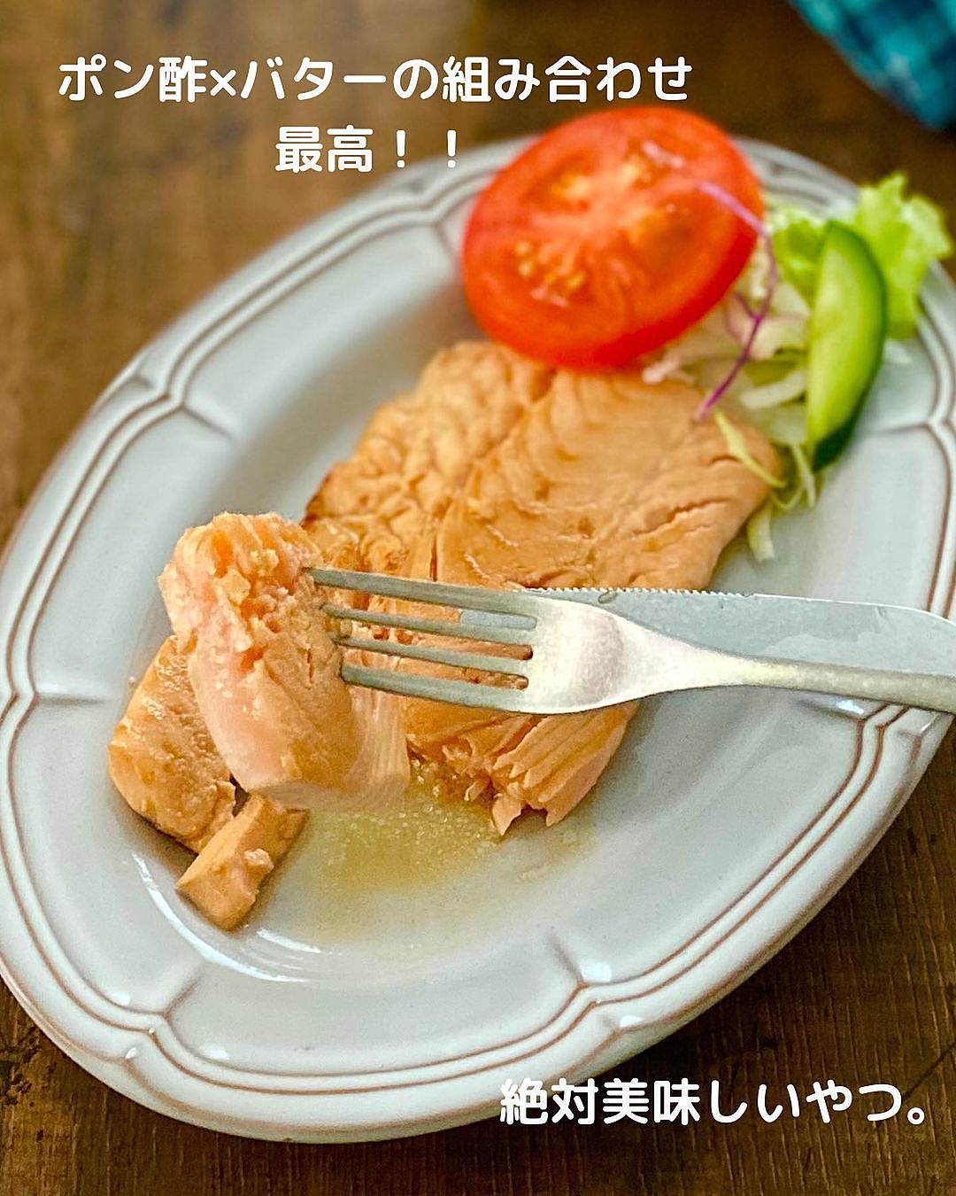 バターが香る♪ サーモンのバターポン酢ムニエル。
