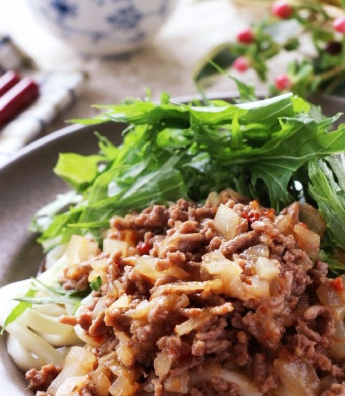 レンジで簡単!冷やしジャージャー麺風うどん。