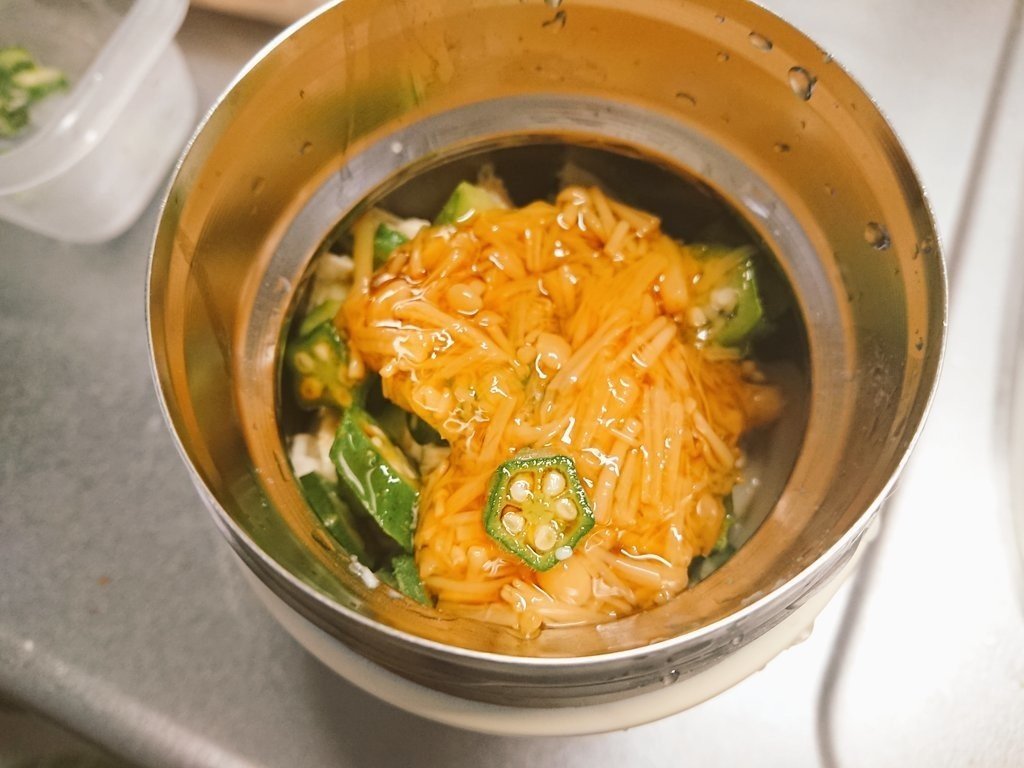 スープジャー1つで満足ランチへの道 レシピその2 ~ ねばねば冷やしぶっかけうどん風原。