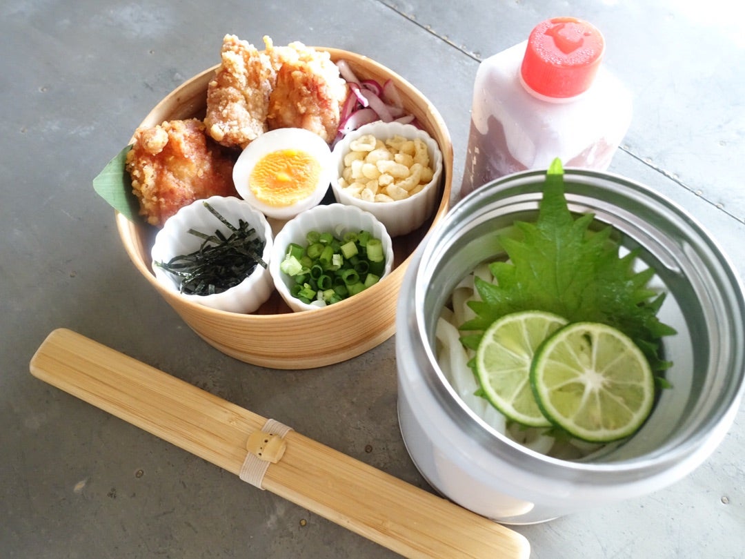 冷やしうどん弁当・1玉がスープジャーにぴったり◇15分以内でお弁当◇。