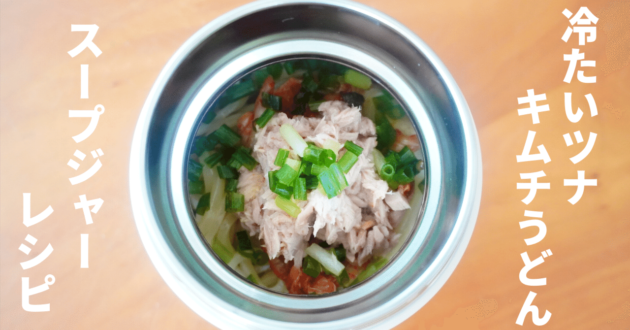 冷たいツナキムチうどん スープジャーレシピ mako_kichen。