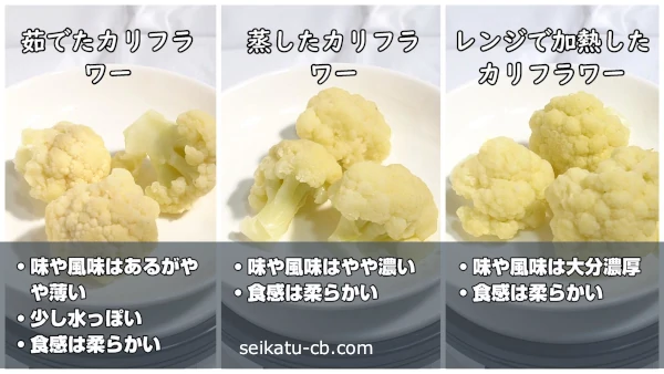 電子レンジVS塩茹で!カリフラワーを比較。
