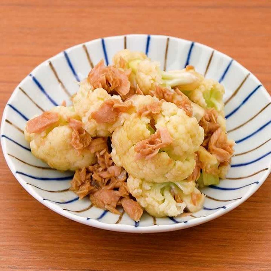 レンジで簡単! カリフラワーとツナのにんにく醤油あえ。