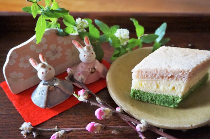 牛乳パックで簡単にできる!「菱餅風ひな祭りライスケーキ」。