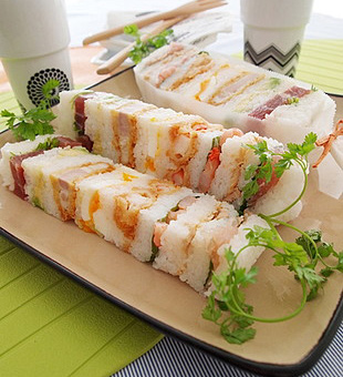 ひし餅風重ねちらしずしサンシャイン。