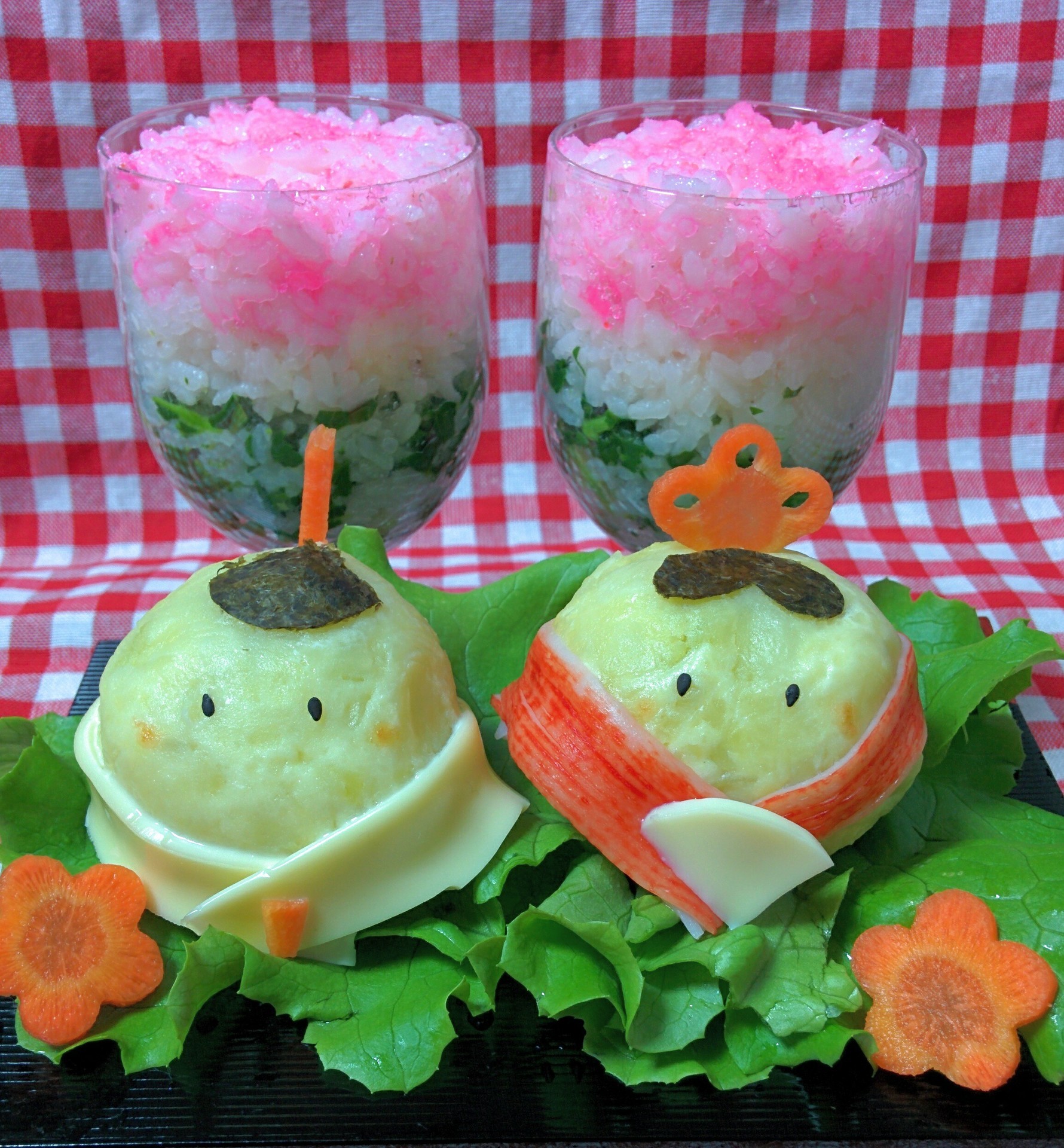 簡単☆ひな祭りキャラご飯〜ご飯で菱餅。