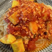 ナスとズッキーニのトマトスパゲティ。