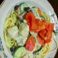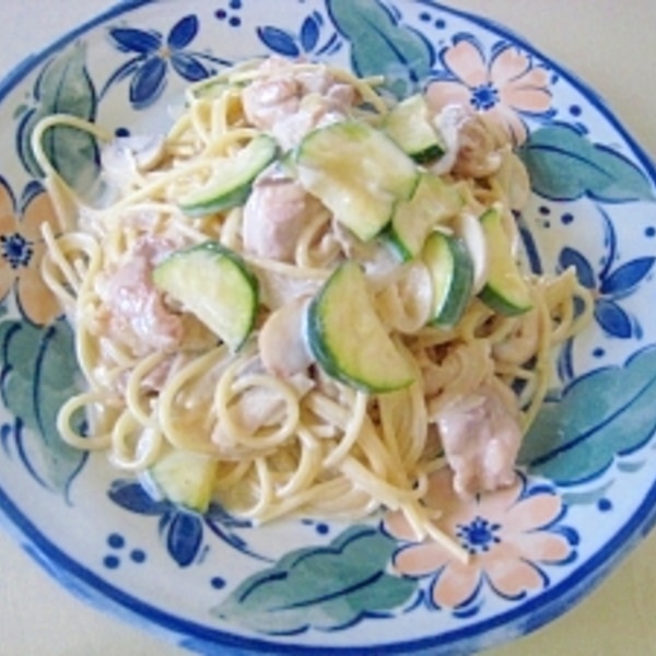 ズッキーニとチキンのクリームパスタ。