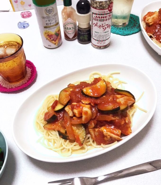 チキンとズッキーニのトマトパスタクラシル。