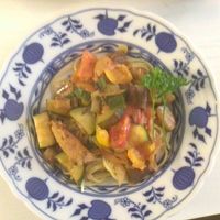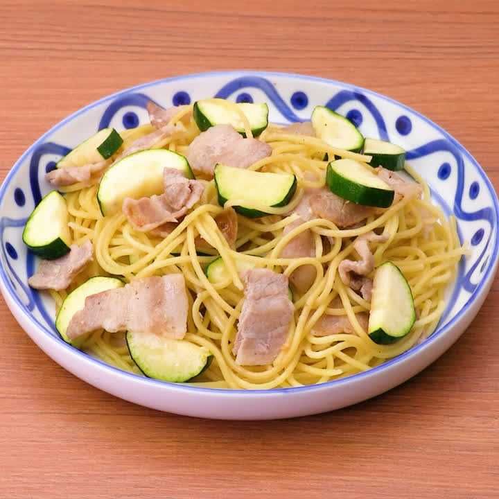 ズッキーニと豚肉のスパゲッティ。